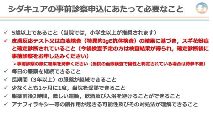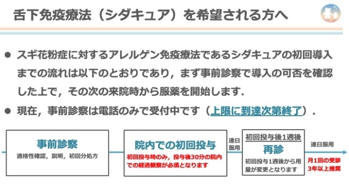 舌下免疫療法(シダキュア)希望の方は電話でお問い合わせください